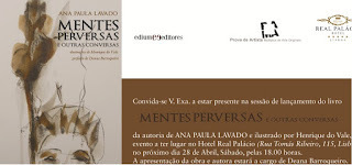 Irei apresentar o livro de poemas "Mentes Perversas ... e outras conversas", de Ana Paula Lavado, uma poetisa de muito talento que gostaria de dar a conhecer aos meus amigos.