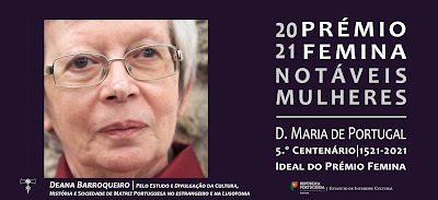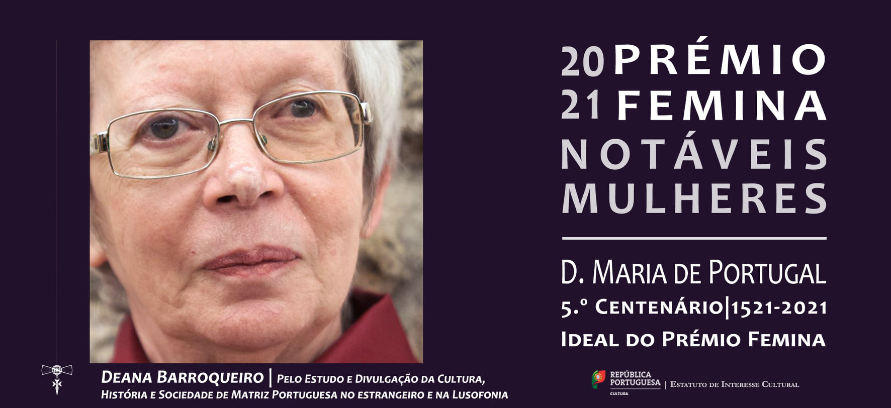 DEANA BARROQUEIRO GALARDOADA COM O PRÉMIO FEMINA 2021 PELO ESTUDO E DIVULGAÇÃO DA CULTURA, HISTÓRIA E SOCIEDADE DE MATRIZ PORTUGUESA NO ESTRANGEIRO E NA LUSOFONIA.