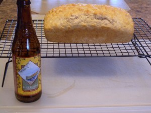 Pour in the beer and stir until dry ingredients are moistened. The dough will be sticky.