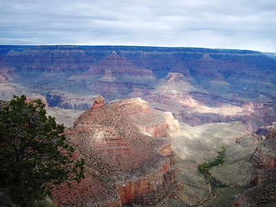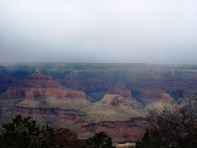 Today's trip to the Grand Canyon comes via frequent blog visitor and commenter, Karen C. She proves that you don't need bright sunny days to take pictures. There's a totally different mood on a cloudy day. Thanks so much, Karen, for sharing!