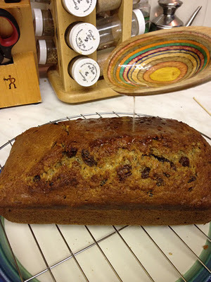 2. Stir in eggs, baking soda, baking powder, salt, cinnamon, mace and nutmeg. Stir in flour and pecans just until moistened. Spoon batter into greased 9x5 inch loaf pan. Bake until wooden pick inserted in center comes out clean, 40-45 minutes. Cool on wire rack 10 minutes. Poke holes in top of cake with a fork.