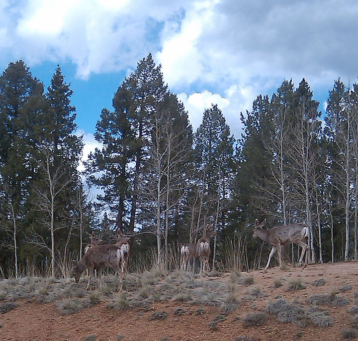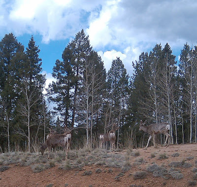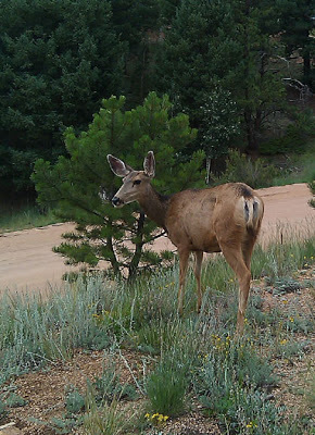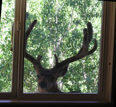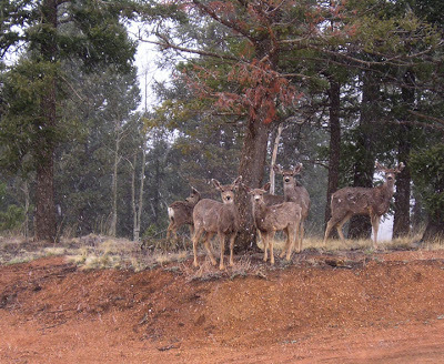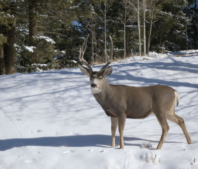 I'd hoped to get out to take some winter pictures around the neighborhood yesterday, but woke to about 8 inches of snow, and it was still snowing. So I went through my hard drive and thought I'd share some deer pix. They're not reindeer, but those don't live around here. The pictures were all taken from our house. Some through glass, some with quickly grabbed cell phones, so I make no claims that they're high-quality shots. Only high-quality subjects.