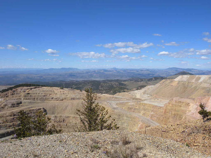 First - there's an active gold mine below the overlook. (And when you drive up there, the guard makes it very clear that you are not welcome anyplace other than the road to the overlook.) Personally, I prefer the views away from the mining operation, although the guys liked watching the big trucks.