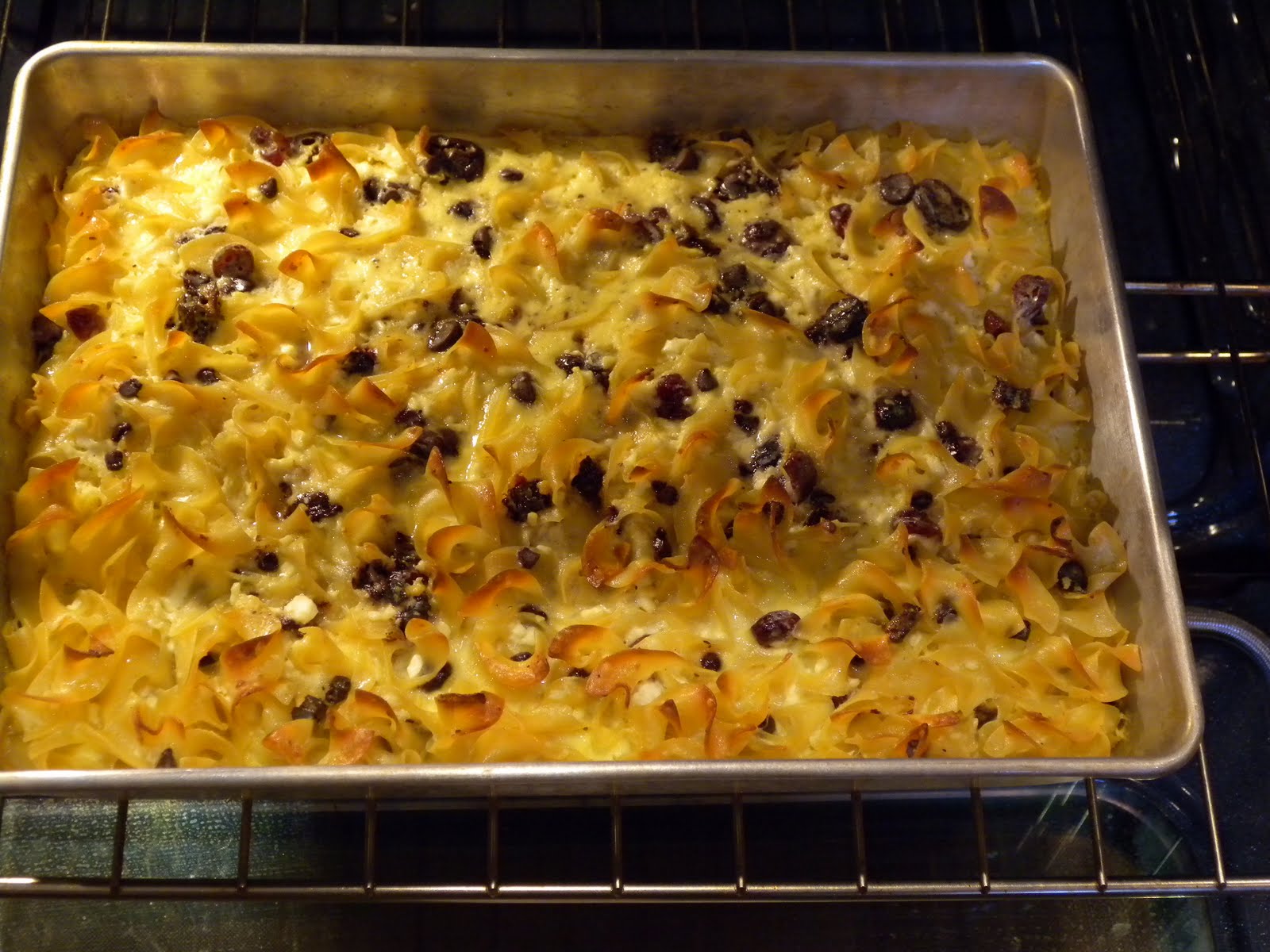 Noodle Kugel with Chocolate Chips and Dried Fruit