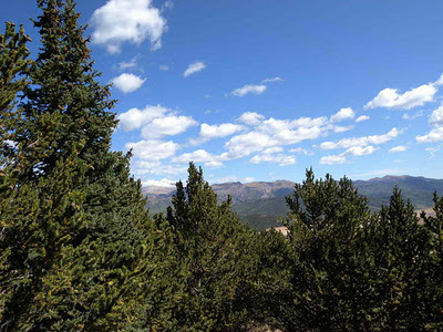 A few weeks ago, I mentioned that we'd gone up to the American Eagle Overlook, and there was lots of old mining crap equipment. There were also some vistas, which I promised to share with you. We also hiked another nearby trail, which also had lots of old mining crap equipment and more vistas. And a critter. Today it's just vistas (and the critter).