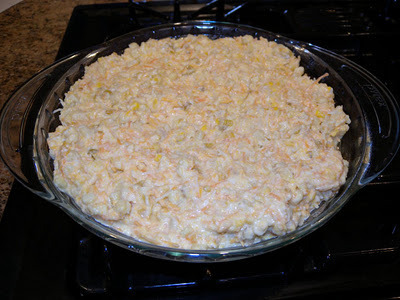 At any rate, there was a chili theme last month, and there were the usual side dishes, but one stood out for me. I asked the woman, Sally Parda, if she'd mind sharing, and she gladly agreed. She pointed out that she adapted a cookbook recipe, and I've included her modifications. I made it according to the directions, and it was just as yummy as the one she brought. And it's one of those, "toss everything into a bowl, mix, and bake recipes, so it goes together quickly.