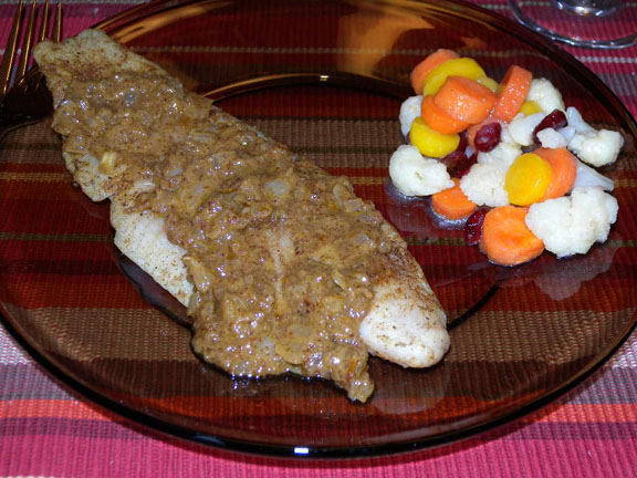 Also, for my fish topper, at the end, I threw in a few glugs of white wine and let it reduce a bit.