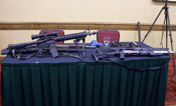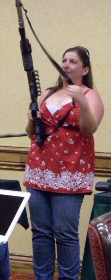 The other activity of the day was a 3 track session hosted by Cindy Gerard and Tara Janzen on aspects of black ops in writing. They had a few guest speakers who are experts in weaponry, and they shared information (and lots of their toys) with the group.
