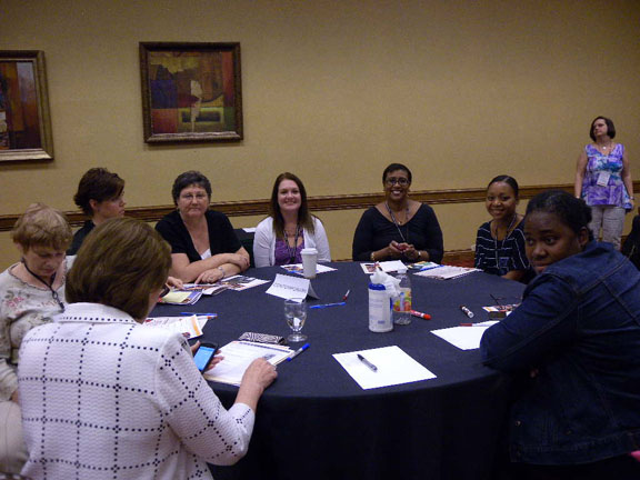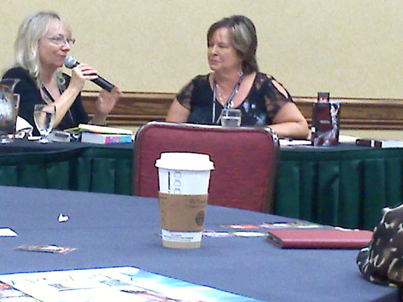 First event was a welcome, where Sue Grimshaw, who's always keeping her finger on the pulse of the marketplace took a brief survey of the group. Bottom line: almost every person at the conference reads both print and e-books, and shops in brick and mortar stores as well as on line.