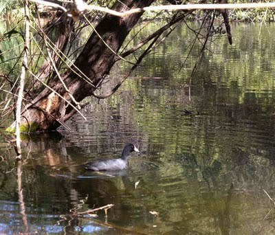 I don't have any fancy equipment like Jason, so my bird shots don't come close to what he does, but here's a coot and one of her chicks.