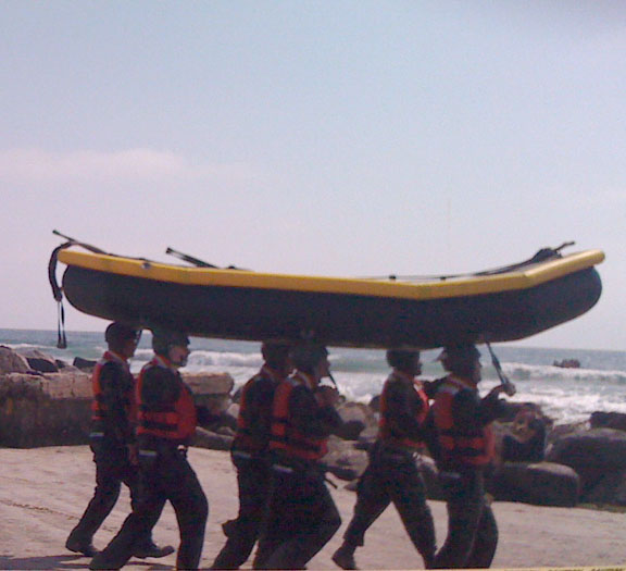 My husband and I just returned from a few days to visit him in San Diego, where he had been sent for a special training. We went down to the beach while he was working, and watched the young recruits moving their boats over the boulders, getting "wet and sandy" and familiarizing themselves with becoming a team, thinking as a team, adjusting for each other's capabilities and shortcomings, to achieve a desired outcome.