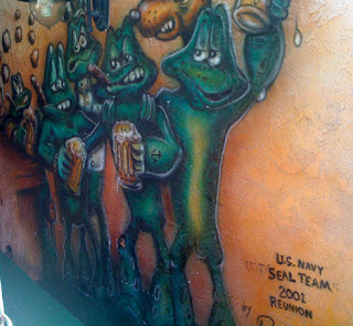 I am writing a series of SEAL stories now, and asked him to take us to a favorite tattoo parlor and one of the grills team guys would hang out. I asked him how he would know another guy belonged to a team. He told me it was the eye contact. And then he added, "Look for a group of guys who dress completely different, but are all doing the same thing."