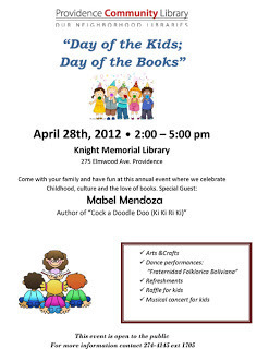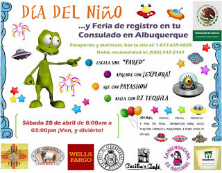 In Albuquerque, Día will be a part of Afterschool Programming at Whittier Elementary School. The Afterschool program participants will watch fellow students present about countries around the world. Also, the Albuquerque Bernalillo County Library System/Lomas Tramway will present an interactive program for young children with storyteller Ramona King, Knee High Tales for Me. The Rio Grande Education Collaborative Afterschool Program at 12 sites will distribute free books to all students for Dia celebration that will include storytelling, art and a nutritional snack. University of New Mexico Libraries will feature Arabic, French, German, Italian, Japanese, Korean, Persian, Portuguese, Russian, Serbo Croatian, Spanish, Tagalog, Ukrainian, Vietnamese displays of multicultural children's books & artifacts of childhood, coloring & activity sheets, information for the College of Education community, etc. beginning April 23 through May 5.
