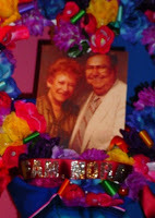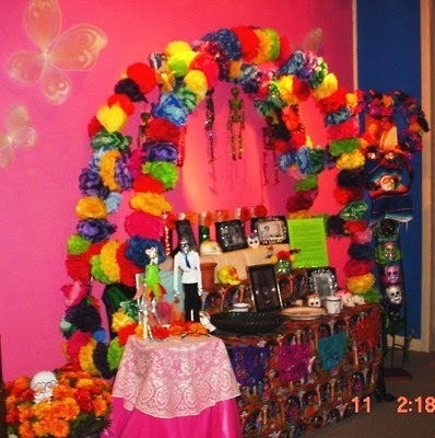 SR: We had to work hard in order to personalize it. My staff constructed a flower corona with a picture of your parents placed in the middle. We printed up pictures of your family since we knew that your parents would like to be surrounded by family. Once you told us your parents favorite foods, then we made sure that your parents would enjoy their meal on their celestial visit. One of my staff members designed two mini-calaveras representing your parents. She placed a multi colored tutu on your mom's calavera in honor of the rainbow tulip. Your father's calavera wore eyeglasses and a suit and tie.