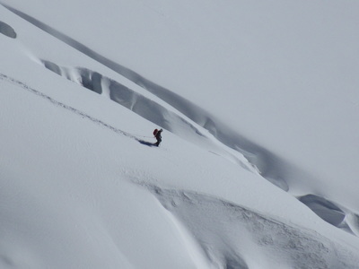 If I was a mouse, there would have been some awesome ski descents to do in the Aiguille Du Midi complex, but right now for us humans there isn't a deep enough snowpack to get the skis out yet, and the glaciers are really open after a hot summer.