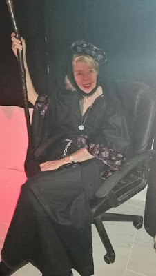 Medieval Sorceress as Greeter at the 19th annual Reale Halloween partyWith hat & wimple slightly askew. (And yes, that's me.)THE SHROUD OF TURIN