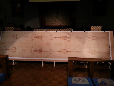 On Saturday morning, October 28, 2017, I attended a lecture at the Episcopal Church of the Resurrection in Longwood, Florida, on the Shroud of Turin (named for the city in Italy where the shroud is now housed). Below is a photo of the full-size replica we saw on Saturday, (shared by a friend, since one of my grandgirls had managed to "hide" my phone!)
