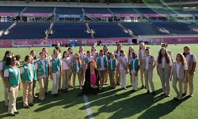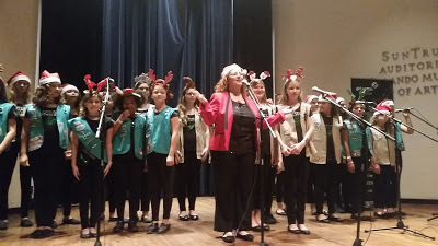 Saturday, December 16:What's that old expression? WE WUZ ROBBED! When it was time for the Citrus Singers to sing the National Anthem at the Cure Bowl today (on the CBS Sports Channel), the network cut to commercial! Would you believe? Everyone there said the girls did their usual great job, but really! That was not nice. We do, however, have a good picture of how they looked during rehearsal, courtesy of one of the parents: