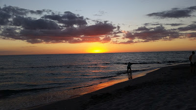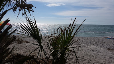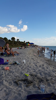 As for our time on the beach this year, we found heavy erosion from hurricane Matthew (which entered the Gulf before turning back over Central Florida and traveling up the east coast, doing heavy damage from Daytona north). There was an upper "cliff" and a "lower" cliff of sand each beach-goer had to negotiate. The wooden walk-over ramps were left dangling 12-18" above the sand, so not very usable. Nonetheless, we had a grand time, spending most of our two days just enjoying the salt air, waves, and the greatest beach for sharks' teeth in the world.