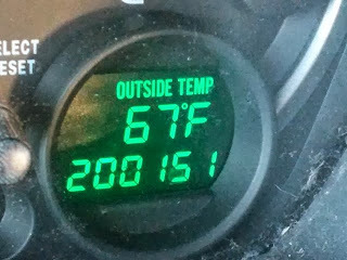 Daughter Susie - photographer on both photos above - crowing on Facebook about the lowest temperature in Orlando since May, but take a good look at the odometer on her Honda SUV!~ * ~