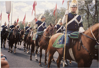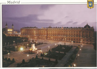 Below is a postcard, plus a personal photo, of the Royal Palace, where it's said guerrilla warfare was born when a thirteen-year-old prince refused to leave the palace when the French sent Mameluke guards to take him into exile—a move that incited ordinary citizens to revolt against their former allies. Although the revolt was swiftly put down, the spark lit in the Plaza de Oriente on May 2, 1808, would help turn the tide against Napoleon (and encourage Britain to send troops to the Peninsula), although it would be five long years before the French were finally driven back behind the Pyrenees into France.