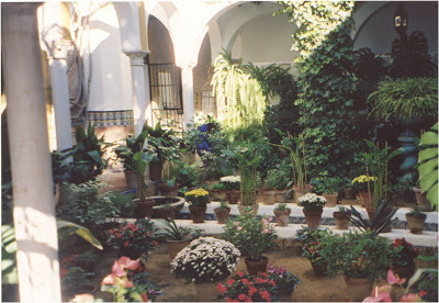 My favorite photo in Seville wasn't the cathedral or even the incredibly narrow cobbled streets and ancient houses. It was a garden I found by peeking through iron bars set in an open window - and discovering a fairyland, a private garden taking up all of a small courtyard in the center of a three-story residential building. It was exquisite - and carefully tended. I only wish I could have gotten a better angle through the bars to show more of it.