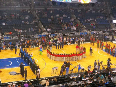 The National Anthem before a Magic's game ~ * ~I may be the only romance writer in existence who writes in Word Perfect, but I've been typing professionally since Noah built the Ark (or at least it seems that long) and when I saw my first word processing machine in 1981 (IBM - $10,000), I went absolutely wild. I had to have one. I'd been typing my mother's manuscripts since I took typing my freshman year in high school, I'd studied advanced typing (oh, wow, electric typewriters!) and shorthand before going to New York to audition for Broadway, knowing I would need a good-paying part-time job until I got a singing job. And it paid off - got the first job I applied for - in a legal office. And yet, for all my skill in English and shorthand, I had to retype something like twelve pages of my first effort because I spelled "judgment" one way and my boss spelled "judgement" the other way! (But, oh joy, I went on tour with The National Company of The Sound of Music within three months of moving to New York City.)