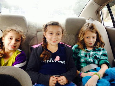 Backseat Beauties - Thanksgiving week 2013Hint for your next Thanksgiving: Riley, the one in the middle above, cut fancy shapes in a variety of fruits and skewered them, along with red grapes, for a light & delicious holiday dessert.
