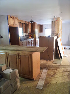 Kitchen under constructionThis is the kitchen on Labor Day weekend. Fortunately, by the time I arrived a couple of weeks later the kitchen had acquired a coffee pot, a toaster, and some utensils. (No sugar.) So, thank goodness, we were able to have coffee & pastries for breakfast.