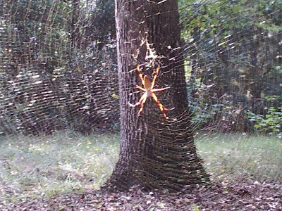 I am happy to say that when we walked down to the river, we did not see a single one of the above. It is, however, exactly like the spider we hit when we were creeping past the truck on the grass verge during our emergency on the Florida Turnpike. No wonder the little girls screamed every time we rolled down the window to talk to the men. They were certain the spider was clinging to the car, just waiting to jump in. We did see some some insects on our walk to the Suwnee—about 3-4" long, wearing a yellow & brown camouflage pattern. We eventually discovered they were praying mantises. Very odd, as the ones I'd seen in Connecticut were c. 6" and lime green. (The difference between lawn mantises and woods mantises?)