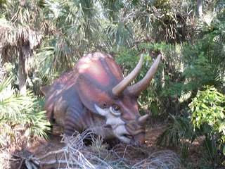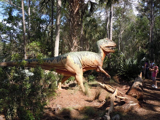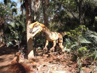 But all in all, the Brevard Zoo is an amazing place - no wonder cars were parked almost all the way to the main road. In addition to the usual array of animals, all "outdoors" in green habitats, there was a very special exhibit that will be there only through May 28, 2012. Sixteen life-size robotic dinosaurs ( not counting hatchlings), moving, roaring, a couple even spitting water, and one eating a large fish. Each carefully labeled in large letters, easy for a child to read. Grandchildren and adults alike were ecstatic. Best extra $5 above ticket price we'd ever paid.