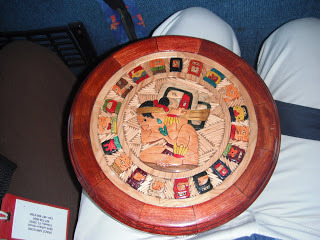 Below: the hand-made wooden reproduction of the Mayan calendar I couldn't resist purchasing.
