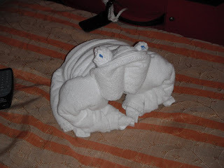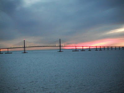 The Sunshine Skyway (Tampa Bay) at sunsetGot back early Friday from a 5-day cruise on the Carnival Paradise with eighteen family and friends. Woo-hoo, did the restaurant tremble when they saw us coming! The greatest irony of the trip - it was organized by my daughter's real estate assistant way back in early September to celebrate her 23rd birthday. One week before the cruise, she was told there was a January opening in nursing school, she wouldn't have to wait until July. BUT if she took it, the cruise was out. So there we were, cruising the Caribbean, celebrating Maria's birthday (and enjoying our cabin stewards' towel animals), while Maria went to school. Sigh.