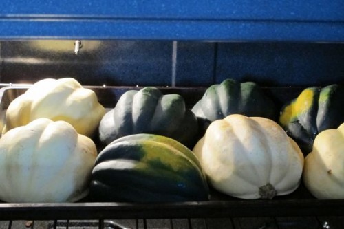 I also looked into purchasing some pre-slaughtered acorn squash, white and green, at the local coop. They were good roasters and had led a happy, local life, I was told.