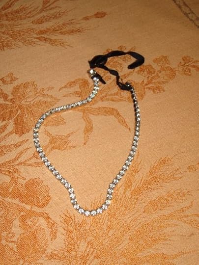 To make a long story short, she did come, and she brought me a present. It was what I found all these years later in that worn jewelry box — a rhinestone necklace with a broken clasp. She had tied two black velvet cords to each end so I could tie it around my neck. I was profoundly touched.