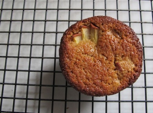Pour batter into prepared muffin pan (either filled with muffin papers or oiled or buttered) and then top each cup with 3 halved pear slices, sticking them in so they stand up like a sail or a shark fin, depending on your mood. Bake for 20-25 minutes or until a knife inserted into a muffin comes out clean. (I recommend letting them bake long enough to crisp a little at the edges, like in the photo.)