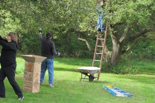 My Aunt Laura and Uncle Bill have a beautiful pear tree on their property, and with a bumper crop this year, they put a call out for anyone who could help diminish their bounty of Starking Delicious pears.
