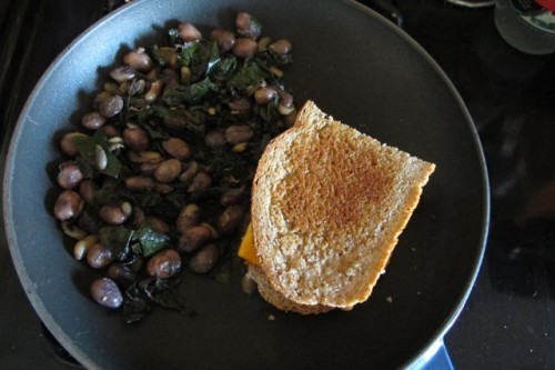 The thing about a CSA is that it encourages you to eat vegetables in different quantities than you might choose otherwise. This is how I came to have an extraordinary amount of roasted beets in my refrigerator. Beets are great. They're pretty and nutritious and tasty. And so this afternoon I thought: Hmmm… Grilled cheese?