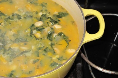 This is how I came to make dinner for writer Chuck Kinder. I approached the idea of butternut stew, an estranged vegan third cousin to the road-kill stew Chuck has concocted for his students, friends, and enemies for years, because I wanted something orange and thick bubbling in the bowls on the table. A mix of Cannelini beans, kale, and butternut was just the thing. It glop-glopped on the back burner all afternoon.