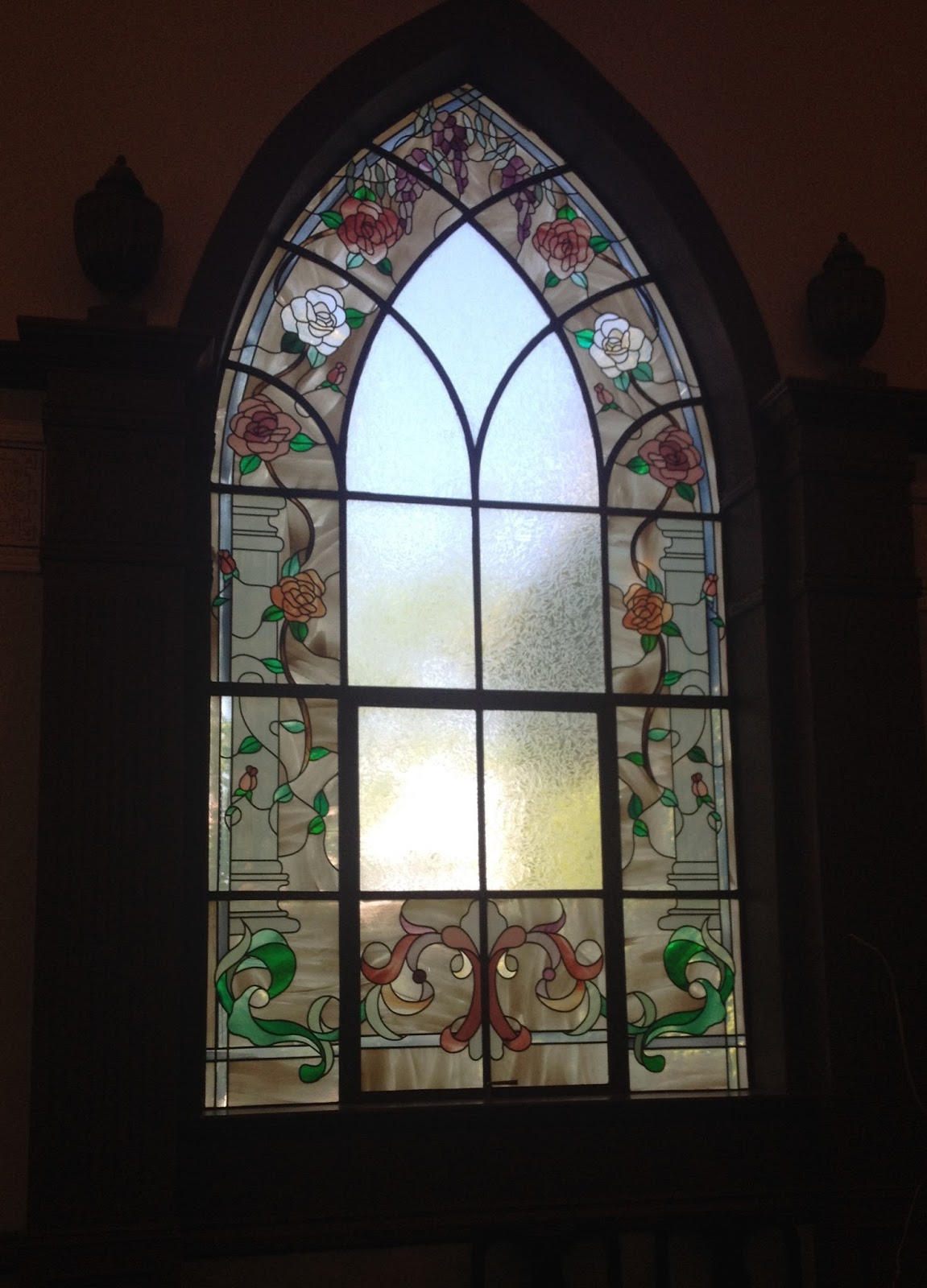 The arched window where a ghost appears in "It's You."I was graciously given a tour of the building, and sure enough, a significant part of my story ended up taking place inside. The window is part of the story, as is the room once used as a chapel. It has beautiful stained glass windows that show up in the story too.
