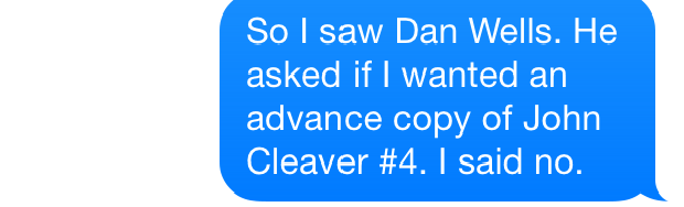 I will always remember what Dan Wells said when he accepted his Whitney Award for Best Novel by a New Author. Keep in mind that he won the award with a HORROR novel. And the sequel also won a Whitney. And so did the third book of the trilogy.