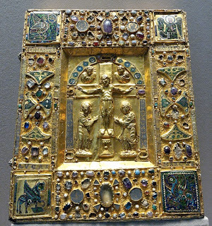 I wanted to find some pictures of my two new heroines to share with you, but apparently these women only exist in my head because none of the pictures I found quite match my imagination. But here's a little tidbit for you. Meg's story revolves around a reliquary box. What is a reliquary? It's a container for holy relics, usually objects associated with the Catholic saints. Many reliquaries were quite elaborate, such as this one, currently housed in the Louvre.