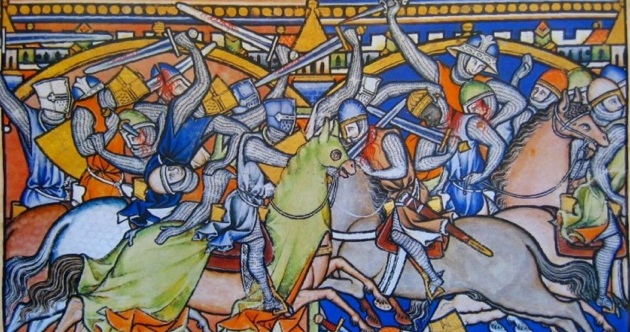 Mêlée: A mock battle between two opposing teams of knights that formed the tournament of the 12th Century