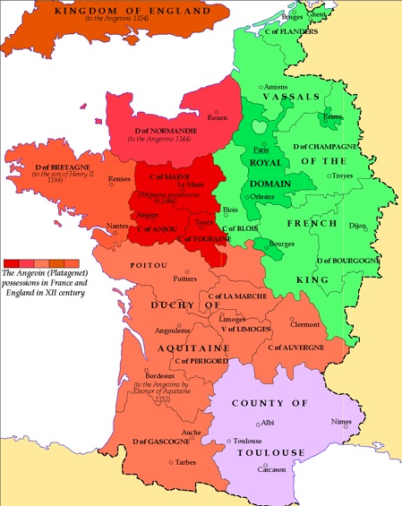 Normandy: A region of northern France bordering the English Channel, ruled by Henry II of England during the Middle Ages; assigned inheritance of Henry's eldest son, Henry, the Young King (along with England and Anjou)