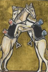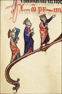 This is the old-fashioned "caption me" game, but with a medieval twist using medieval paintings, like this one: