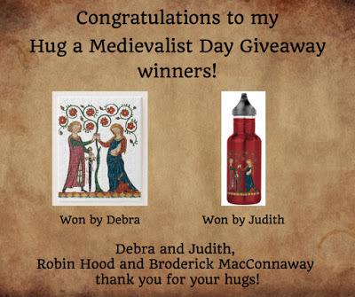 Congratulations to our Hug a Medievalist Day winners! Debbie G (who wanted to hug Robin Hood) won the Love and Chivalry puzzle and Judith M (who wanted to hug Broderick MacConnaway from the book, Heart of a Highlander) won the Love and Chivalry water bottle.