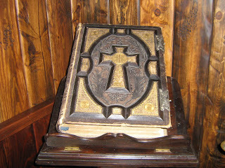 Next we visited inside the Little Chapel of Miracles. It was too dark inside to snap too many pictures, but I did manage this one of the bible. Maybe I'll work a bible like this into a future medieval story of mine.