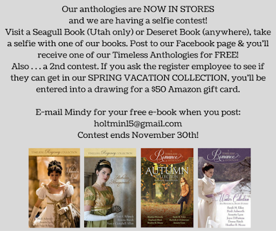 Four of the Timeless Romance Anthology series are now available in paperback in Seagull Books (Utah only) and Deseret Book stores (everywhere)! You can win a FREE BOOK by helping the authors to celebrate! (In full disclosure, my short medieval Christmas story, Caroles on the Green, is included in the Winter Anthology edition.)