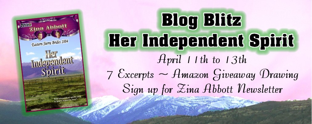Today Zina Abbott will share with you excerpt #3 anda chance to win a copy of Her Independent Spirit by playing the Amazon Giveaway sweepstakes.