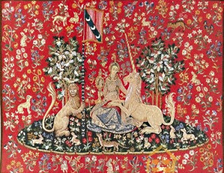 The low-lying flowers this woman is sitting in is an example of a medieval mead